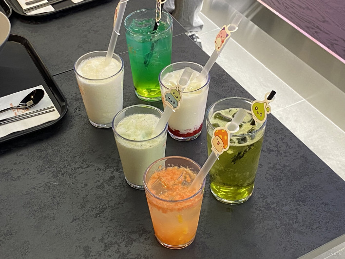 Food is a PC bang essential. It’s common these days to “just eat at the PC bang,” and, true to Lee’s comments, Maple Agit offers a full MapleStory-themed F&B lineup. Main dishes include “Nemi’s Lunchbox,” “Kkil-kkil Fried Rice,” “Gallina Tomato Dakgangjeong,” “Gallus Garlic Dakgangjeong,” and “Boo-hoo Fried Sundae (fried Korean blood sausage).” Drinks include “Pink Bean Strawberry Latte,” “Slime Green Grape Ade,” “Orange Mushroom Grapefruit-Orange Ade,” “Yeti Plain Yogurt Smoothie,” “Spirit of the Rock Pistachio Smoothie,” and the house special “Agit Elixir.”